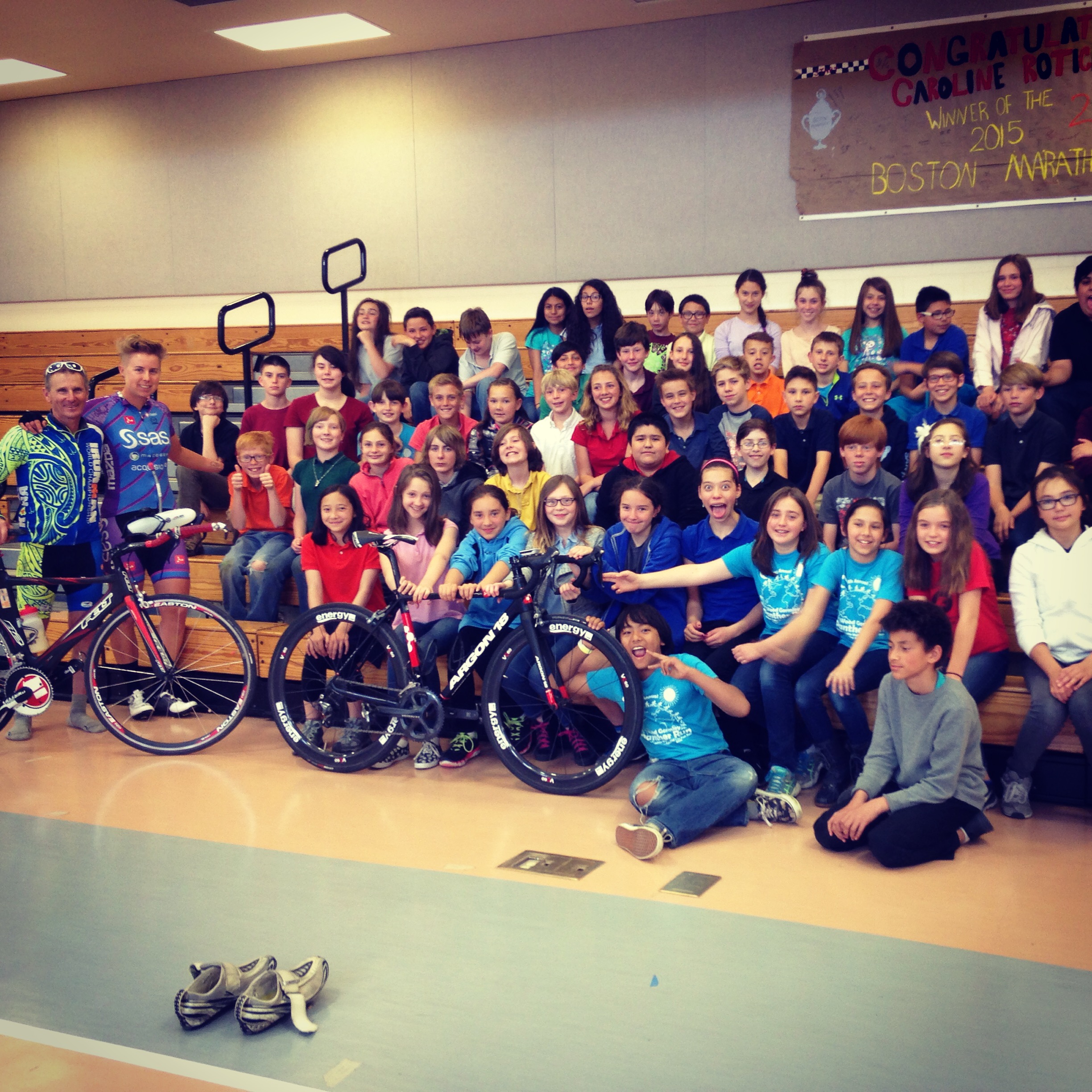 Aside from training and packing I made time for something very important to me. I visited my old elementary school and talked to the 6th graders about being a pro cyclist. Ted Freedman, my PE teacher from the school, was my biggest motivator to begin running and still follows my journey.